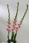 19-30 Artful 12-207 461 Cliff Hartline unknown X unknown pale rose outer edges with deep rose and yellowish green markings toward center 4-3/4" floret, 18 buds, 7 open, 5 in color Flowerhead 19" Field height 39" 78 days Pleasant Valley Glads |