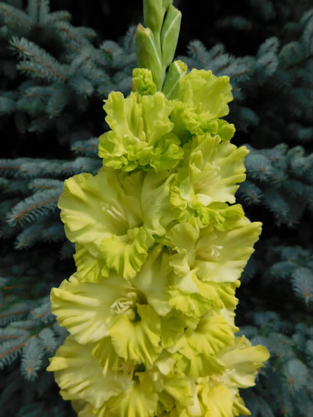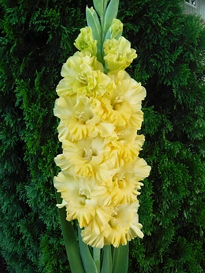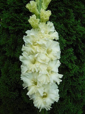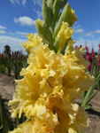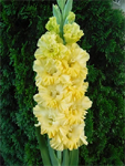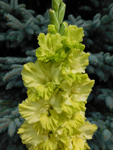 19-33 Lacy Sensation 15-106 410 Cliff Hartline 11-65 (yellow Seedling) X Boy O Boy cream with slightly deeper cream center, with serrated edges, heavy ruffling 5" floret, 21 buds, 8 open, 7 in color Flowerhead 25" Field height 49" 81 days Pleasant Valley Glads |