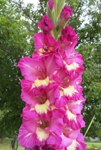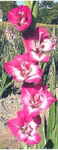 19-7 Rose Lights RS-TPO-17 464 Ron Bowen Raspberry Swirl X Tampico bright rose with a silver line around the edge 5" floret, 24 buds, 8 open, 5 buds in color Flowerhead 28" Field height 52" LM Alleman Gladiolus |