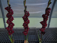 19-48 Dark Ride PS 1408 267 Petr Smida Prepychy 47, 51732 Prepychy, Czech Republic Barborka X Regent deep dark wine-colored, tiny white line on lower petals 3-1/4" floret, 23 buds, 9 open, 4 in color Flowerhead 22-1/2" Field height 48" 80 days Gladioly-Petr-Smida |