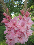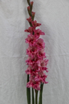 19-35 Peppermint King X-14-3 443 Cliff Hartline unknown X unknown rosy pink with cream infusion, deep rose lip marking 5" floret, 21 buds, 8 open, 6 in color Flowerhead 29" Field height 48" 80 days Pleasant Valley Glads |