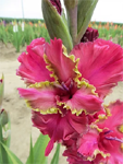19-34 Outer Limits 15-119 467 Cliff Hartline Gold Finger X Emerald Spring deep rose with light green ruffling on edges of inner petals 4-3/4" floret, 22 buds, 8 open, 5 in color Flowerhead 28" Field height 51" 82 days Pleasant Valley Glads |