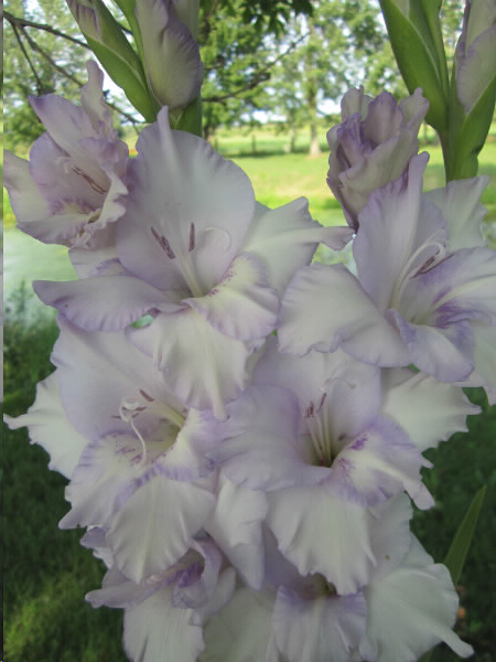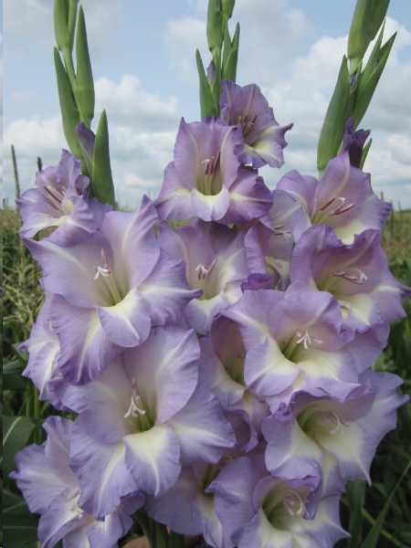 19-5 Sir Cat CSJ-1216-94 175 C Sue Jackson (Lady Edith X Wondrous) X Grand Girl medium lavender, white throat and rib lines with small lavender blotch 2-1/4" floret, 18 buds, 8 open, 4 buds in color Flowerhead 22" Fieldheight 45" 82 days Blooming Prairie Gardens |